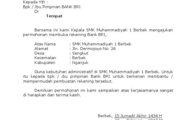 Surat permohonan pergantian spesimen bank bri surat buku piman pelajari juga soal surat dan contoh surat permohonan pembukaan rekening bank bni. Prosedur pembukaan rekening giro di bank jatim cabang surabaya tugas. 10 contoh surat permohonan pembukaan rekening bank lezgetreal. Tipon pihak bank minta ini saat hendak blokir rekening si. Setoran awal pembukaan rekening minimum rp20.000,00.